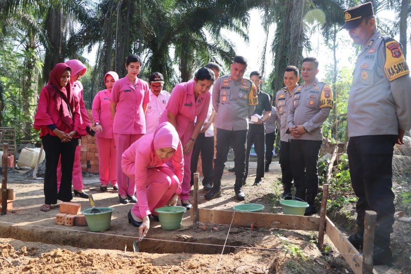HUT Bhayangkara Polres Muara Enim, Peletakan Batu Pertama Bedah Rumah untuk Warga Desa Harapan Jaya