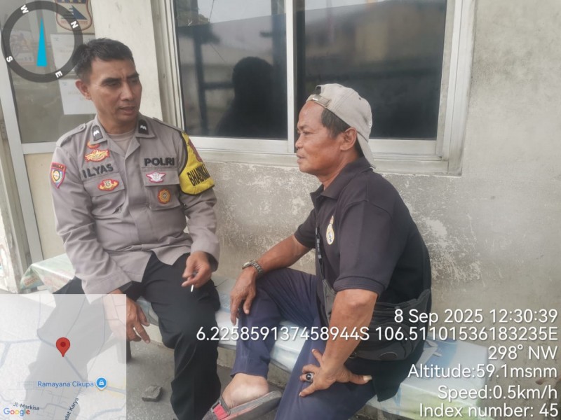 Tangerang – Bhabinkamtibmas Polsek Cikupa, Aipda Ilyas, melaksanakan kegiatan sambang ke warga di Kelurahan Sukamulya, Kecamatan Cikupa, Kabupaten Tangerang, Senin (8/9/2025). Kegiatan tersebut bertujuan mempererat silaturahmi sekaligus menyampaikan pesan kamtibmas kepada masyarakat.