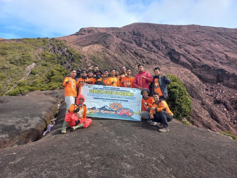 Ketua Senkom Mitra Polri Kecamatan Bangko, Oetomo Sanjaya, S.Kom., menuturkan perjalanan menantang yang mereka lalui. Meski diguyur hujan lebat pada malam hari, seluruh personel berhasil mencapai puncak dengan berangkat dari titik smelter terakhir pukul 04.00 WIB.