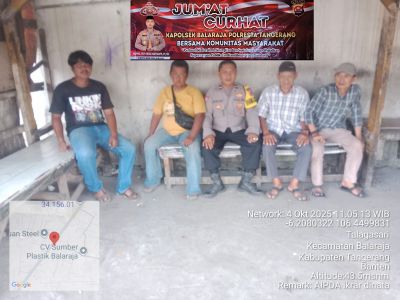 Cilegon, 5 Oktober 2025 – Dalam rangka menekan potensi gangguan kamtibmas (GKTM) dan menciptakan lingkungan yang aman serta kondusif, Bhabinkamtibmas Polsek Cinangka Polres Cilegon Polda Banten melaksanakan kegiatan sambang rutin ke wilayah binaannya, Minggu (5/10/2025).