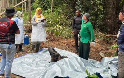 Tim Bidlabfor Polda Riau yang dipimpin oleh IPTU Imam Yusuf Hanura, telah mengambil sampel tanah di sekitar lokasi gajah mati untuk diuji di laboratorium.